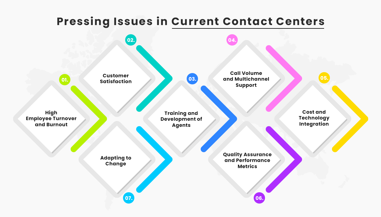 Contact centers have critical roles in customer service and are facing problems that result in inefficiency, reduced employee satisfaction, and the experience of the customers. Here is the list of major ones: