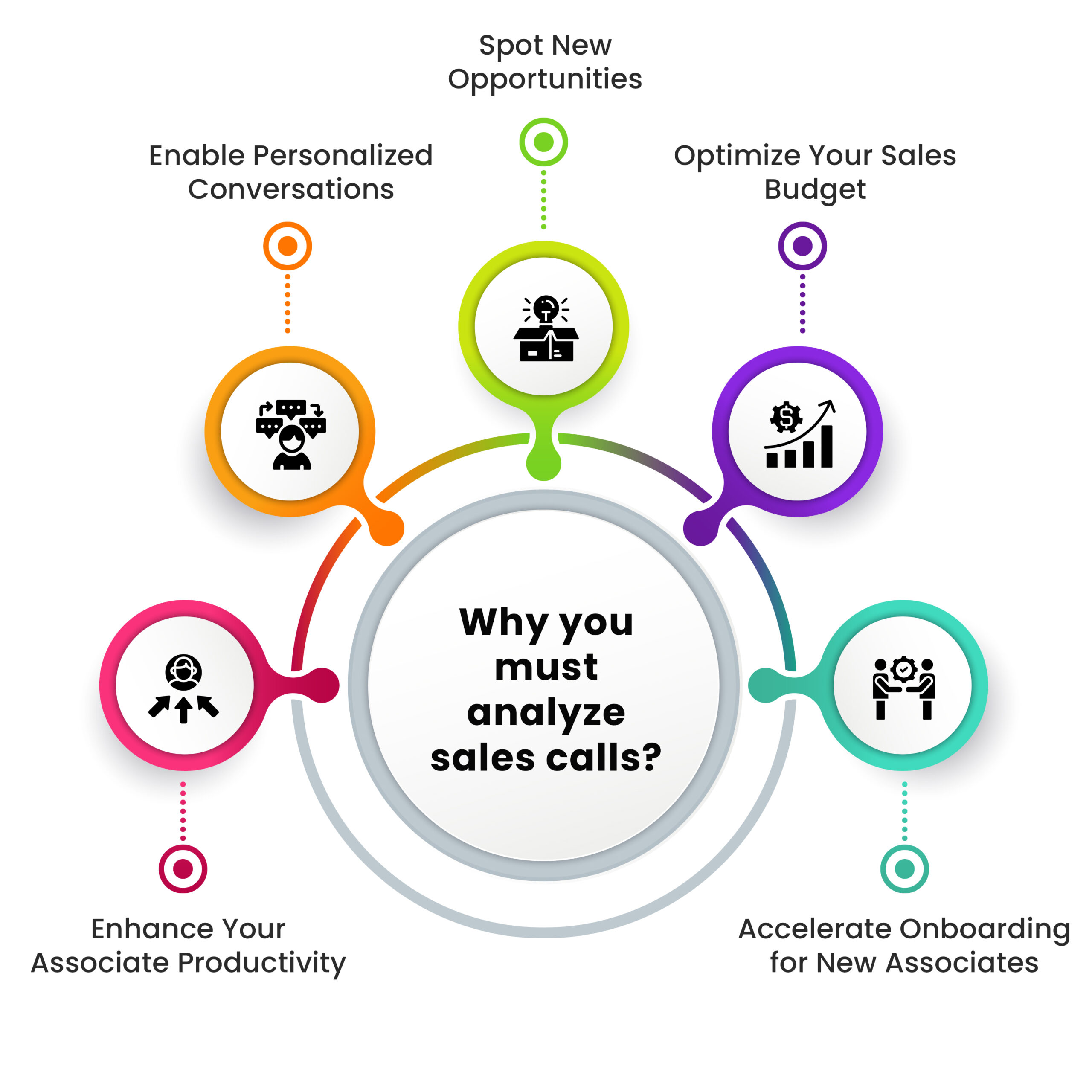 Let’s face it— as a sales leader or sales manager, you can’t monitor every conversation your team has. However, you can always share the insights and collected data from past call analyses with your associates for their improvement. By reviewing their past approach and peers’ work they can adjust their approach. This also enhances their productivity but also ensures they’re always improving without constant supervision.
